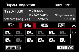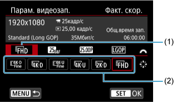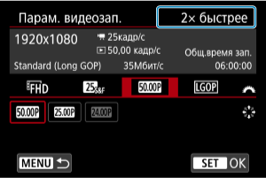 - Установленная частота кадров при записи может обновиться, если значение параметра [