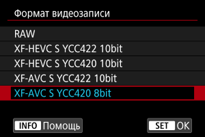 | XF-HEVC S YCC420 10bit | H.265/HEVC | 4:2:0/10-bit | XF-HEVC S может использоваться для записи 10-битных сигналов YCC 4:2:0. | – |