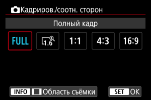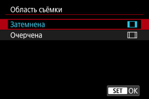 - Параметр [Область съёмки] не влияет на отображение, если задана настройка [1,6x (кадрирование)] или установлен объектив RF-S/EF-S.