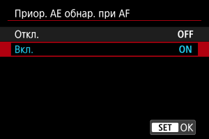 - [Вкл.]: замер производится на основе точки AF или области AF, в которой обнаружен объект.