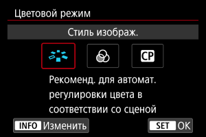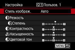 - Если для варианта [Пользов. *] уже зарегистрирован стиль изображения, при изменении базового стиля изображения настройки параметров зарегистрированного ранее пользовательского стиля изображения сбрасываются.