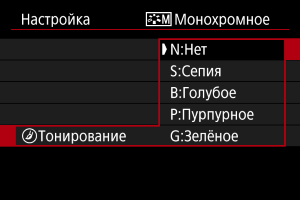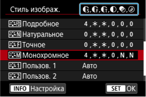 Можно настроить любой стиль изображения, изменив его настройки по умолчанию. Подробнее о настройке стиля [Монохромное] см. в разделе Настройка стиля «Монохромное».