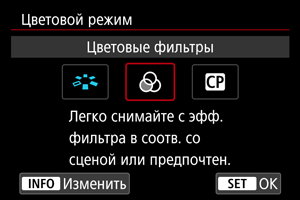 Предпочитаемые вами характеристики изображения видеозаписей или фотографий можно установить из меню стиля изображения, цветовых фильтров или пользовательского изображения.