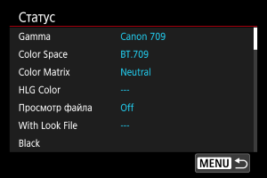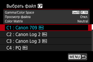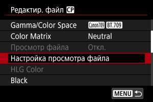 - Зарегистрированный файл вида не может использоваться, если изменить настройки [Gamma/Color Space], [HLG Color] или [Over 100%] после регистрации.