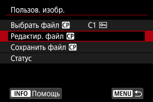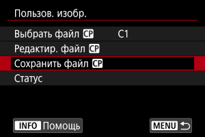 Отредактированные файлы пользовательского изображения можно сохранить на карту и использовать в других камерах той же модели.