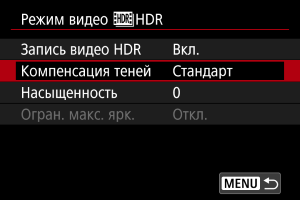 Съемка HDR (PQ)] задано значение [HDR PQ].