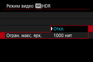 - Если задано значение [Откл.], максимальная яркость не ограничивается. Рекомендуется при просмотре изображений на мониторе, поддерживающем отображение с яркостью более 1000 нит.