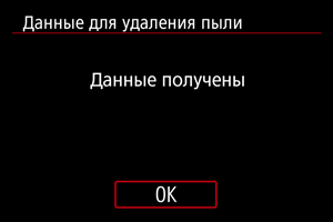 - После завершения съемки камера начинает сбор данных для удаления пыли. После получения данных для удаления пыли появляется сообщение.