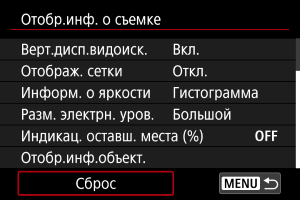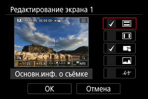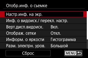 Можно настроить сведения и экраны информации, отображаемой на экране или в видоискателе при съемке.
