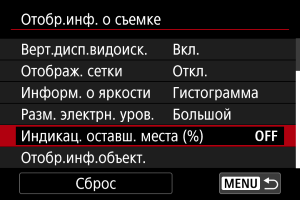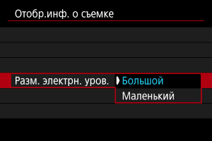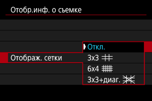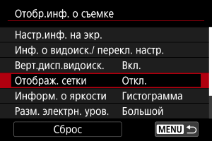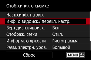 вверх или вниз, выберите варианты для отображения на экране информации в видоискателе.
