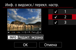 вверх или вниз, выберите экраны информации для отображения в видоискателе.