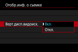 Можно выбрать способ отображения информации в видоискателе при фотосъемке в вертикальной ориентации.