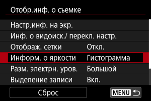 Выберите тип гистограммы ([Яркость] или [RGB]) и размер отображения ([Большой] или [Маленький]).