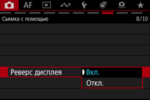 - Выберите [Откл.], если вы предпочитаете не переворачивать дисплей, когда экран направлен в сторону объекта.