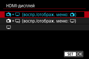Можно указать, как отображаются видеозаписи при записи по интерфейсу HDMI на внешнее устройство. Сам выходной видеосигнал соответствует настройке [: Парам. видеозап.].