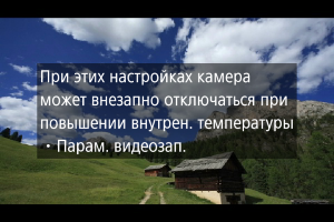 Инструкции предупреждают, что камера может нагреваться внутри, если видеоролики записываются при текущих настройках, и что если запись продолжится, камера может автоматически выключиться.