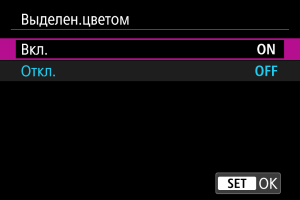 - При выводе через HDMI выделение цветом не отображается на оборудовании, подключенном по HDMI. Обратите внимание, что выделение цветом отображается на экране камеры, когда для параметра [