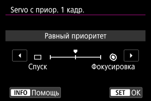Для режима «Покадровый AF» можно задать приоритет фокусировки или приоритет спуска затвора (кроме съемки при касании).