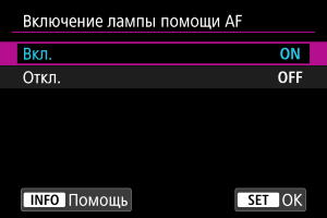 Разрешает включение лампы помощи AF при необходимости.