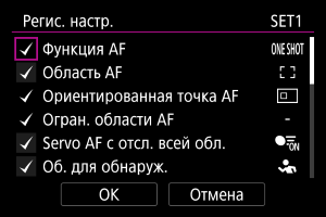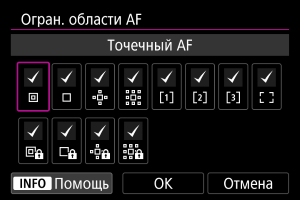 Можно ограничить области AF теми областями, которые обычно используются. Выберите доступные области AF и кнопкой установите флажок [