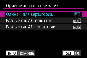 Положения точек AF или рамок зональной AF, назначенные каждой из трех ориентаций камеры, сохраняются.