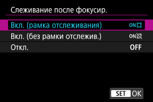 - Если фокусировочное кольцо используется, когда включена эта функция, отключается выбор объекта нажатием на экране и использование кнопок для начала и остановки отслеживания.