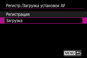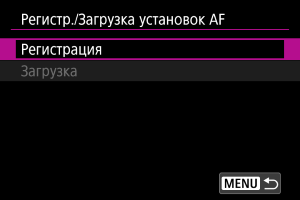 Выберите настройки AF для регистрации.
