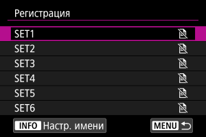- Текущие настройки камеры перечислены на экране из шага 4, который служит для регистрации настроек. Пункты, перечисленные на этом экране, невозможно изменить.