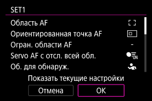 ]. Выберите [OK] для регистрации настройки. Подробные сведения об областях AF см. в разделе Область AF.