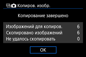- После завершения копирования отображаются результаты. Выберите [OK], чтобы вернуться к экрану из шага 2.