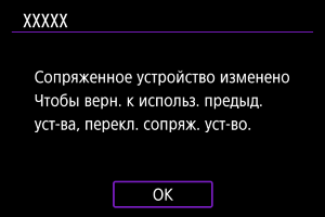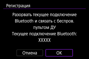 - Если камера уже сопряжена с другим устройством, отображается сообщение. Выберите [OK] для завершения текущего подключения Bluetooth.