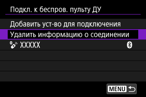 Можно удалить информацию о подключении. При этом отменяется сопряжение для всех подключенных беспроводных пультов ДУ.
