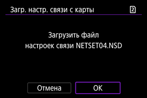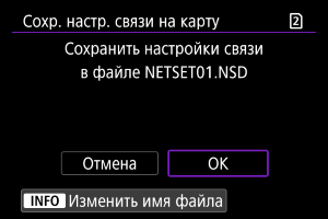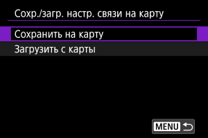 : Сохр./загр. настр. с карты] позволяет сохранить все настройки связи из камеры на карту или загрузить все настройки связи для другой камеры с карты.
