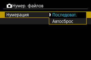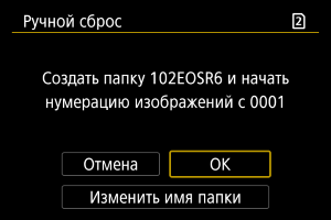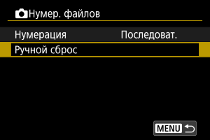 При выполнении сброса нумерации файлов вручную автоматически создается новая папка, и нумерация файлов изображений, сохраняемых в этой папке, начинается с 0001.