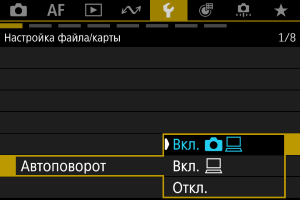 - Изображения, при съемке которых для автоповорота было задано значение [Откл.], не поворачиваются при просмотре, даже если для автоповорота задано значение [Вкл.