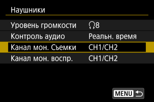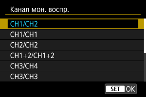 Выберите [Канал мон. Съемки] или [Канал мон. воспр.].