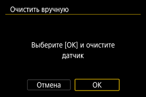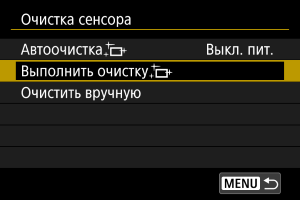 - При повторной очистке датчика изображения заметного улучшения результатов не происходит. Обратите внимание, что сразу после очистки пункт [Выполнить очистку