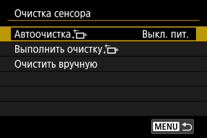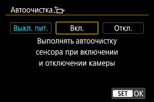 - Если задано значение [Выкл. пит.] или [Вкл.], очистка датчика выполняется при выключении экрана, в том числе при его автоматическом выключении.