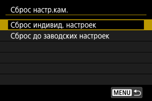 1. Выберите [Настройка: Сброс настр.кам.] ().