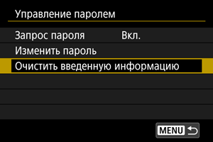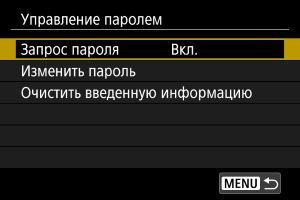 Можно изменить пароль, который должен вводиться при установке переключателя питания в положение или при возобновлении работы камеры после автоматического отключения питания.