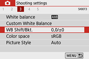 zrušíte všetky nastavenia položky [WB Shift/Bkt. / Posun/stupňovanie vyváženia bielej].