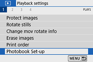 - Tento fotoaparát nepoužívajte na konfigurovanie nastavení fotoknihy pre snímky s nastaveniami fotoknihy vykonanými v inom fotoaparáte. Všetky nastavenia fotoknihy sa môžu neúmyselne prepísať.