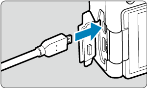 - Zapojte zástrčku kábla do konektora digitálneho rozhrania na fotoaparáte (USB Micro-B).
