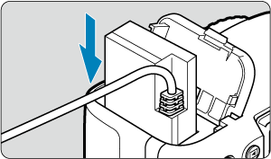 Vložte DC adaptér do fotoaparátu.