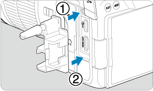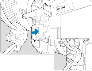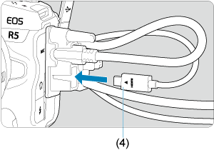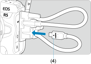 Ak používate voliteľný prepojovací kábel Canon, pred pripojením držiaka (5) k ochrannému prvku kábla ho preveďte cez držiak.