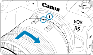 • Zarovnajte červené značky pre nasadenie na objektíve a fotoaparáte a otočte objektívom v smere šípky, až kým s cvaknutím nedosadne na svoje miesto.