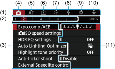 sa prepne hlavná karta (skupina funkcií). Karty môžete prepínať môžete aj stlačením tlačidla
