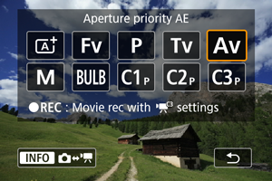 V tomto režime nastavujete požadovanú hodnotu clony a fotoaparát automaticky nastavuje rýchlosť uzávierky, aby sa dosiahla štandardná expozícia vyhovujúca jasu objektu. Nastavením vyššieho clonového čísla (menšieho clonového otvoru) sa do rozsahu prijateľného zaostrenia dostane väčšia časť pozadia a popredia. Naopak, nastavením nižšieho clonového čísla (väčšieho clonového otvoru) sa do rozsahu prijateľného zaostrenia dostane menšia časť pozadia a popredia.