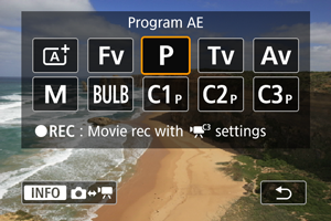 a prejdete na tu zobrazenú obrazovku [Shooting mode/Režim snímania].