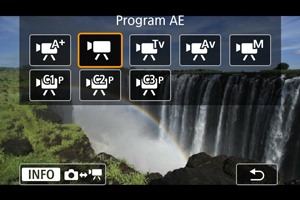 a prejdete na tu zobrazenú obrazovku [Shooting mode/Režim snímania].